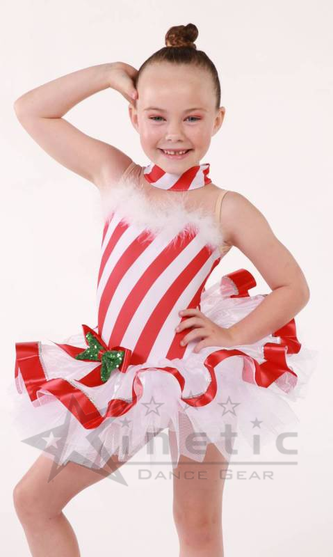 Red and white stripe tutu with ribbon trim and sequin.